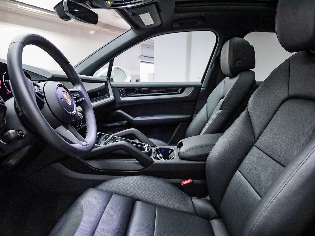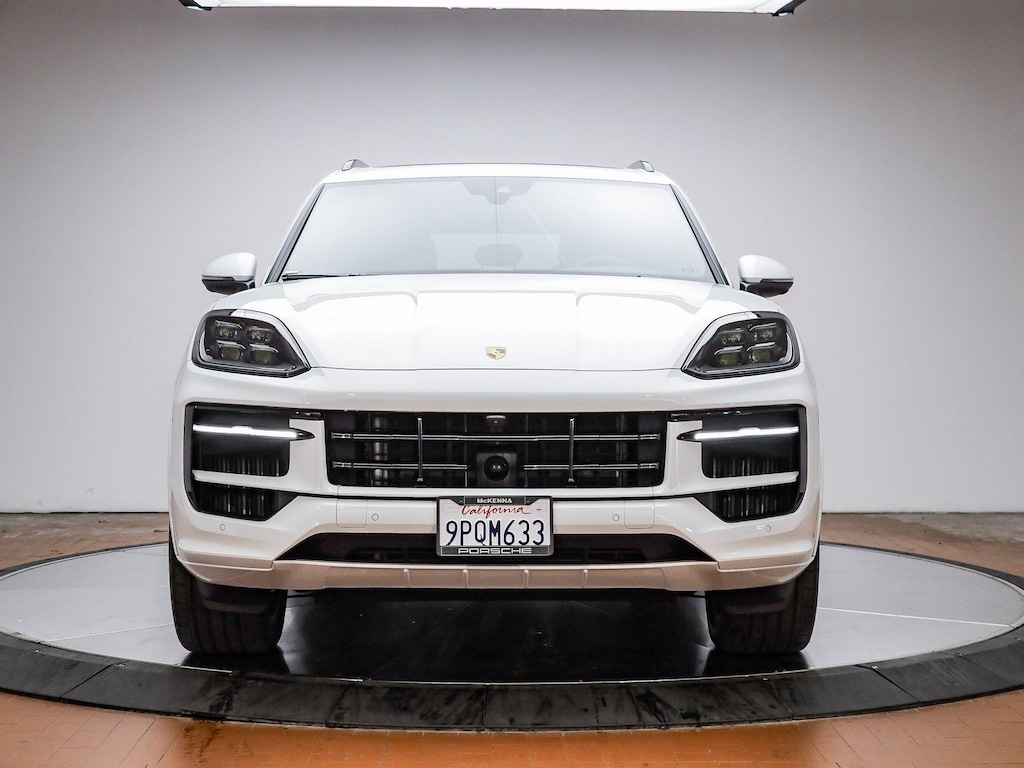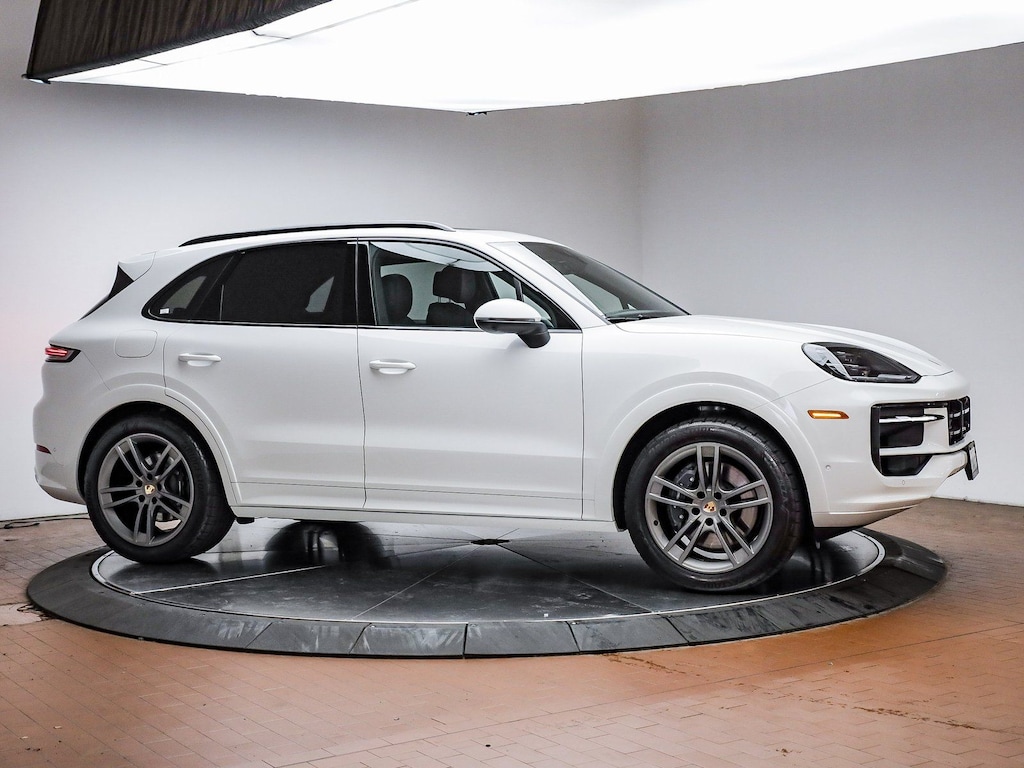 Certified. White 2025 Porsche Cayenne Premium Package plus AWD 8-Speed Automatic with Tiptronic 3.0L V6 Black Leather, 14-Way Power Seats w/Comfort Memory, 4-Zone Climate Control, ABS brakes, Adaptive Cruise Control w/Lane Keep Assist (LKA), Alloy wheels, BOSE Surround Sound System, Compass, Electronic Stability Control, Exclusive Design Fuel Cap, Front dual zone A/C, Front Ventilated Seats, HD-Matrix Design LED Headlights, Heated door mirrors, Heated front seats, Illuminated entry, Low tire pressure warning, Navigation System, Panoramic Roof System, Porsche Communication Management, Porsche Crest on Front Headrests, Power Liftgate, Premium Package Plus, Rear Heated Seats, Remote keyless entry, Roof Rails in Black Aluminum Finish, Sport Tailpipes in Silver, SportDesign Package in High Gloss Black, Traction control, Trailer Hitch w/o Tow Ball, Wheels: 21" Cayenne Turbo Design in Vesuvius Grey, Window Trim in High Gloss Black.