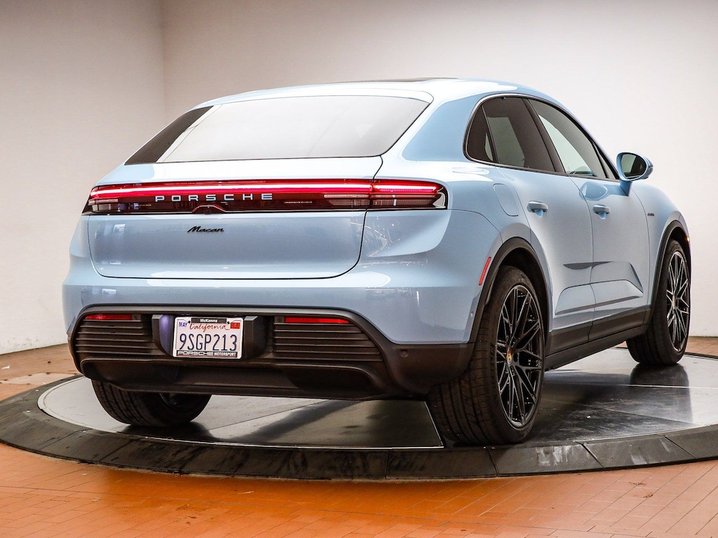 Certified. Blue 2025 Porsche Macan Electric RWD Single-Speed Automatic Electric ZEV 335hp ABS brakes, Active Cruise Control, Alloy wheels, Compass, Electronic Stability Control, Front dual zone A/C, Heated door mirrors, Heated front seats, Illuminated entry, Low tire pressure warning, Navigation System, Porsche Communication Management, Power Liftgate, Remote keyless entry, Traction control.