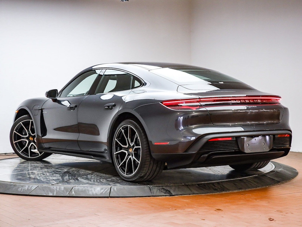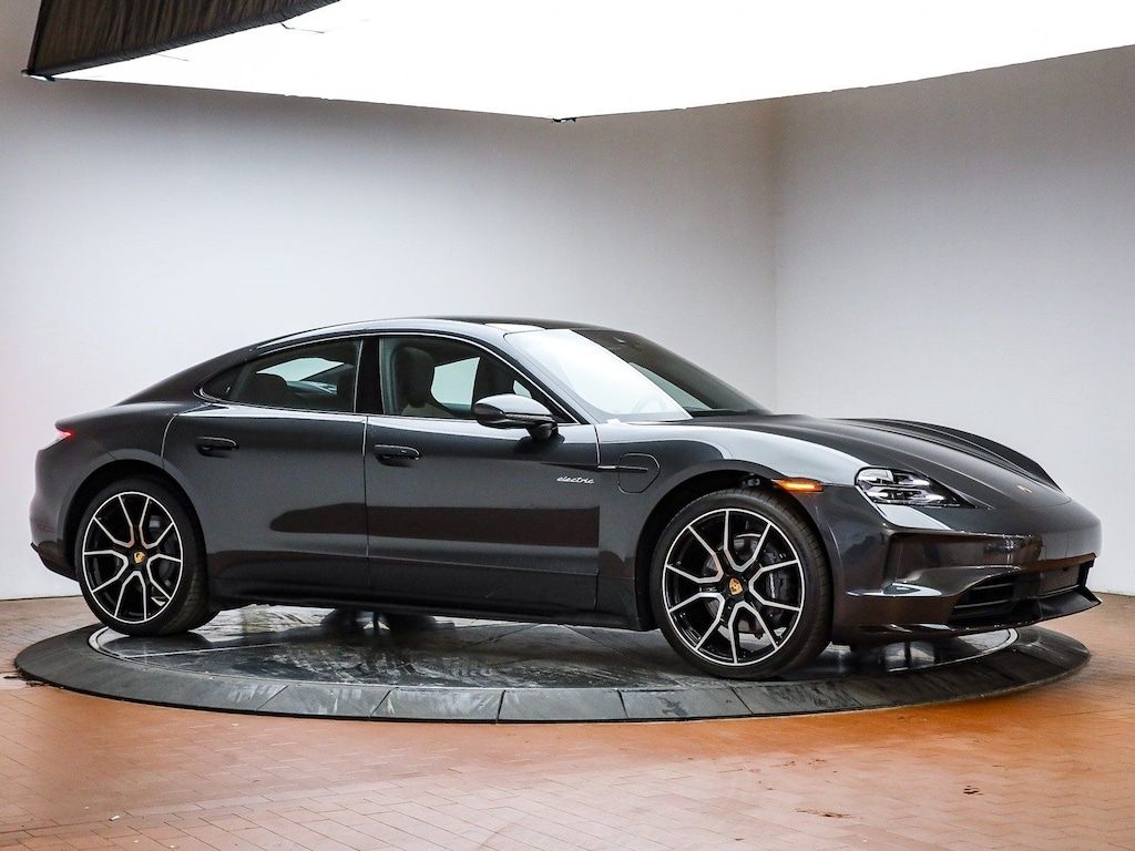 Certified. Volcano Grey Metallic 2025 Porsche Taycan 2-Speed Automatic Electric Motor ABS brakes, Alloy wheels, Compass, Electronic Stability Control, Front dual zone A/C, Heated door mirrors, Heated front seats, Illuminated entry, Low tire pressure warning, Navigation System, Porsche Communication Management, Remote keyless entry, SportDesign Package in High Gloss Black, Traction control, Wheels: 21" RS Spyder Design.